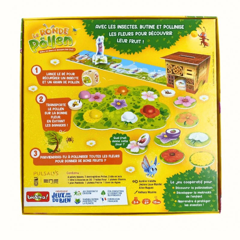Dans ce jeu coopératif, les joueurs découvrent comment les fleurs donnent des fruits, grâce à la pollinisation ! Pour cela, ils promènent les insectes de fleur en fleur et doivent éviter les dangers naturels et les pesticides. Les joueurs parviendront-ils à polliniser toutes les fleurs pour donner de bons fruits ?