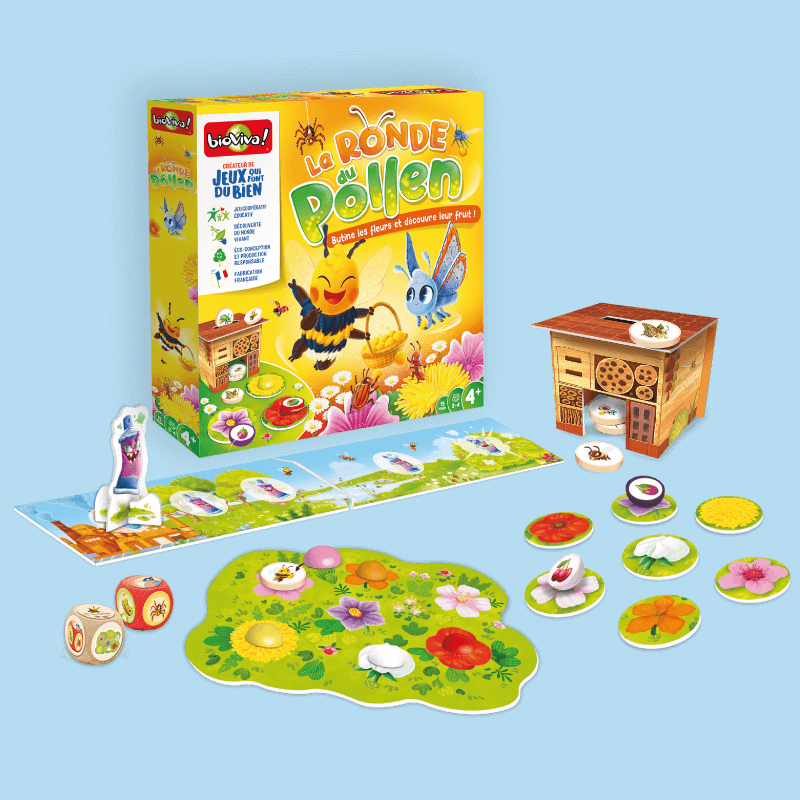 Illustration d'un jeu de société sur la polinisation chez Bioviva